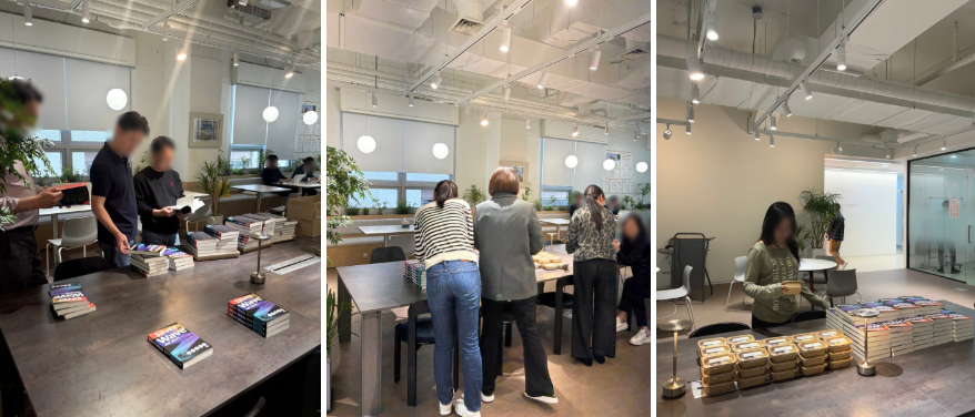 책이 출간된 날, 사내에서 작은 축하 시간을 가졌어요.