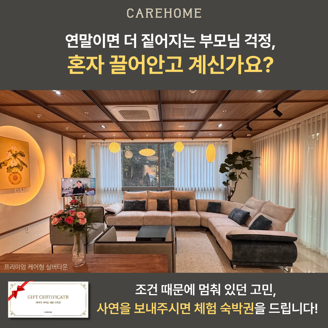실버타운 입주, 고민이 많으시다면? 케어홈 2박 3일 무료 체험 숙박권 이벤트 안내🎈