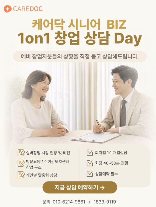 은퇴 후 창업, 나에게 맞는 시니어 창업이 있을까?요양·돌봄 창업 현실 정리ㅣ케어닥 시니어BIZ 1on1 상담 Day