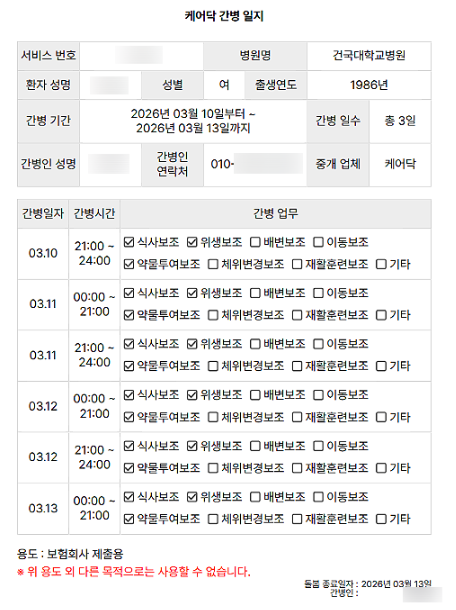 돌봄일지 = 간병 증빙
